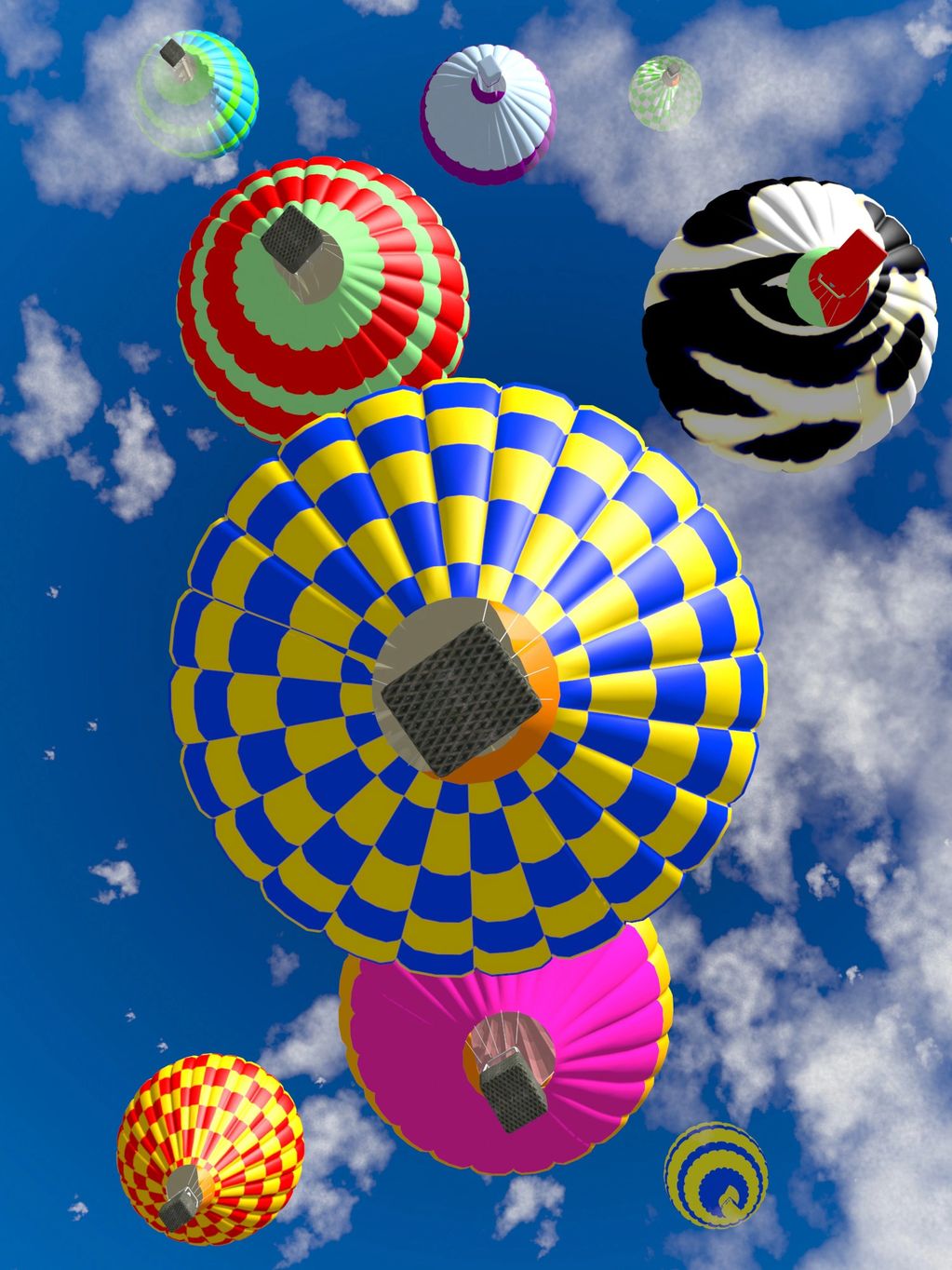 I downloaded the balloon from an online source. Changed all the colors. Animated the balloons and camera. Used a good map from USGS satellite images for the Bay Area and created the clouds as camera facing particle systems.
